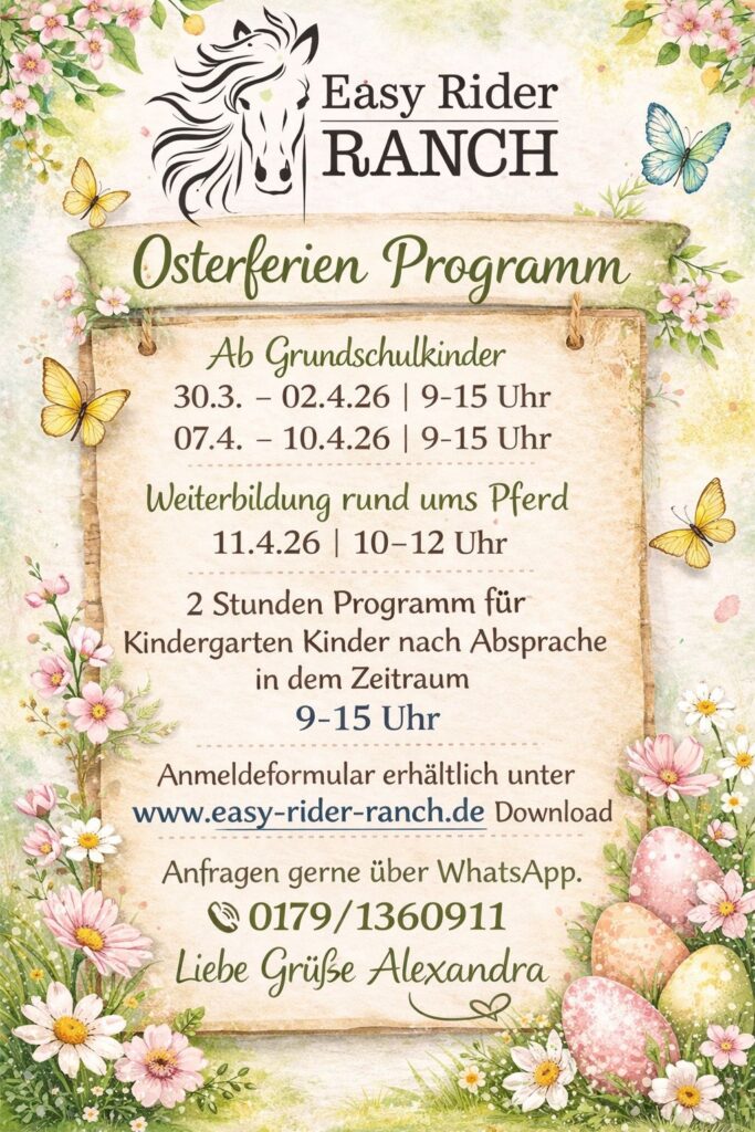 Ausritte ab 2 Stunden 28. + 29.05.2023 Buchung unter 0179/1360911. Gerne auch per WhatsApp