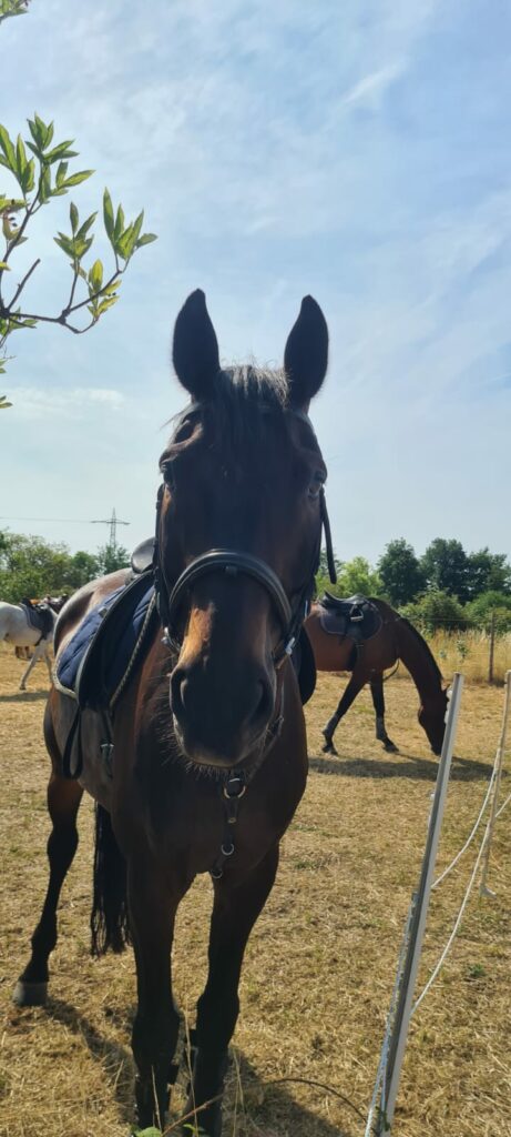 Müsste ich mich selbst beschreiben, würde ich über mich sagen, dass ich immer ein braver und treuer Reitbegleiter bin, auch wenn Du schon ein paar mal geritten sein solltest, denn ich habe sehr viel Schwung in meinen Gangarten und viel Freude an meinem neuen Leben bei Alex und und mit euch.